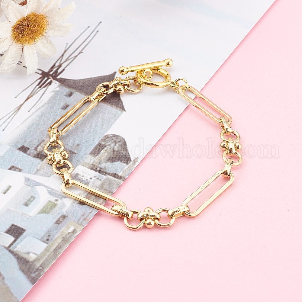 • Настоящее золото 18K Браслеты из латуни, с Переключить застежками, реальный 18 k позолоченный, 7-1/2 дюйм (19 см)