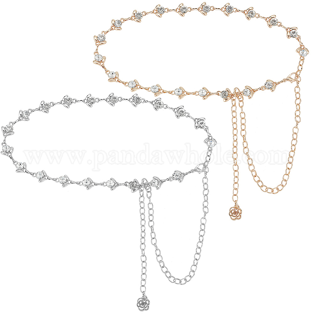 Цепные ремни с цветочными звеньями из кристаллов и страз: длина около 24.21 дюйма (615 мм) (без удлинителя цепи), удлинитель цепи: 545x7.5x1.7 мм, Цветок: 19x15x4 мм, ссылка: 22x17.8x8 mm, 2 цветов, 1 шт / цвет, 2шт;