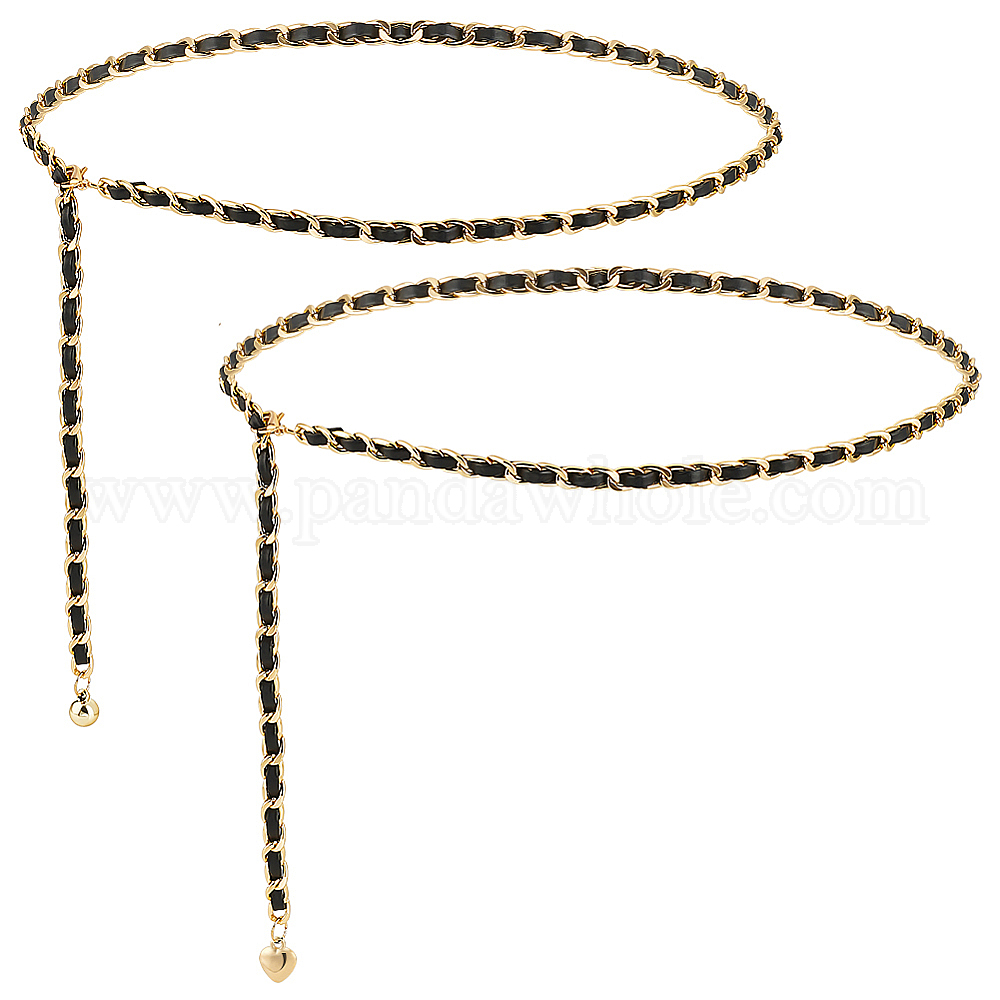 2шт 2 стильные алюминиевые цепные ремни с круглыми и сердечными подвесками, поясные цепи из искусственной кожи для рубашки, юбки, платья, пальто