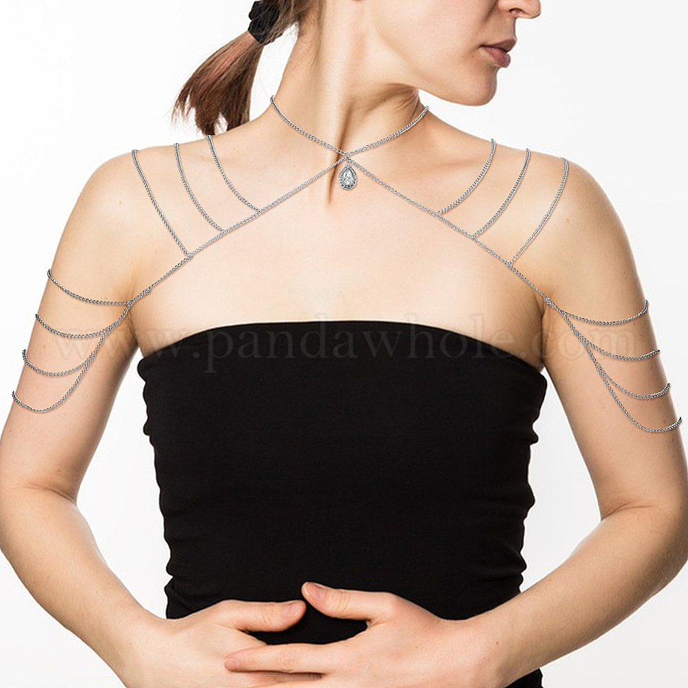 Многослойная цепь из цинкового сплава с кисточками на плечевые цепи, подвески-слезинки со стразами, украшения для тела на плечевой ремень