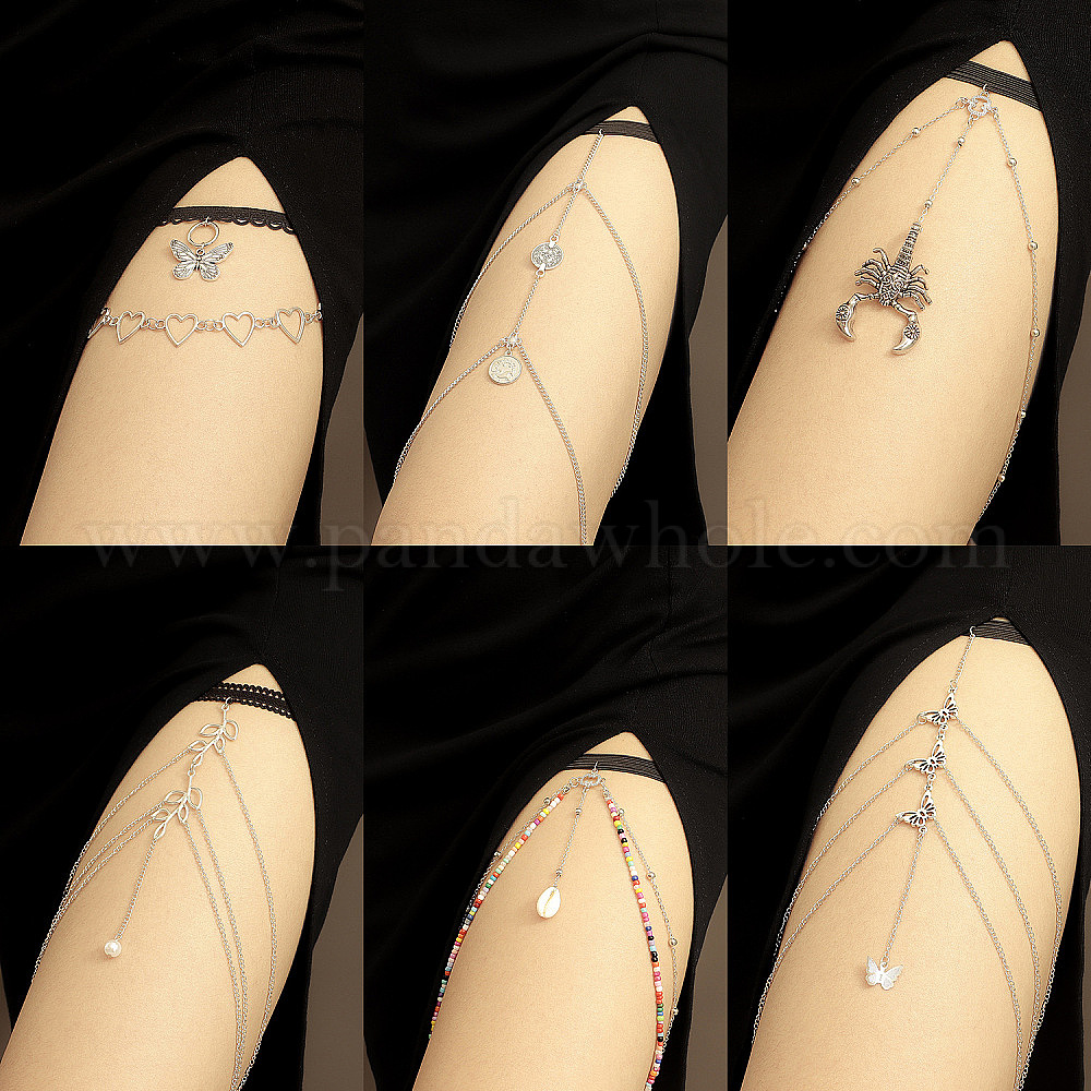 Цепочка на бедро из сплава с кисточками, кружевная эластичная лента-цепочка для тела для женщин, платина