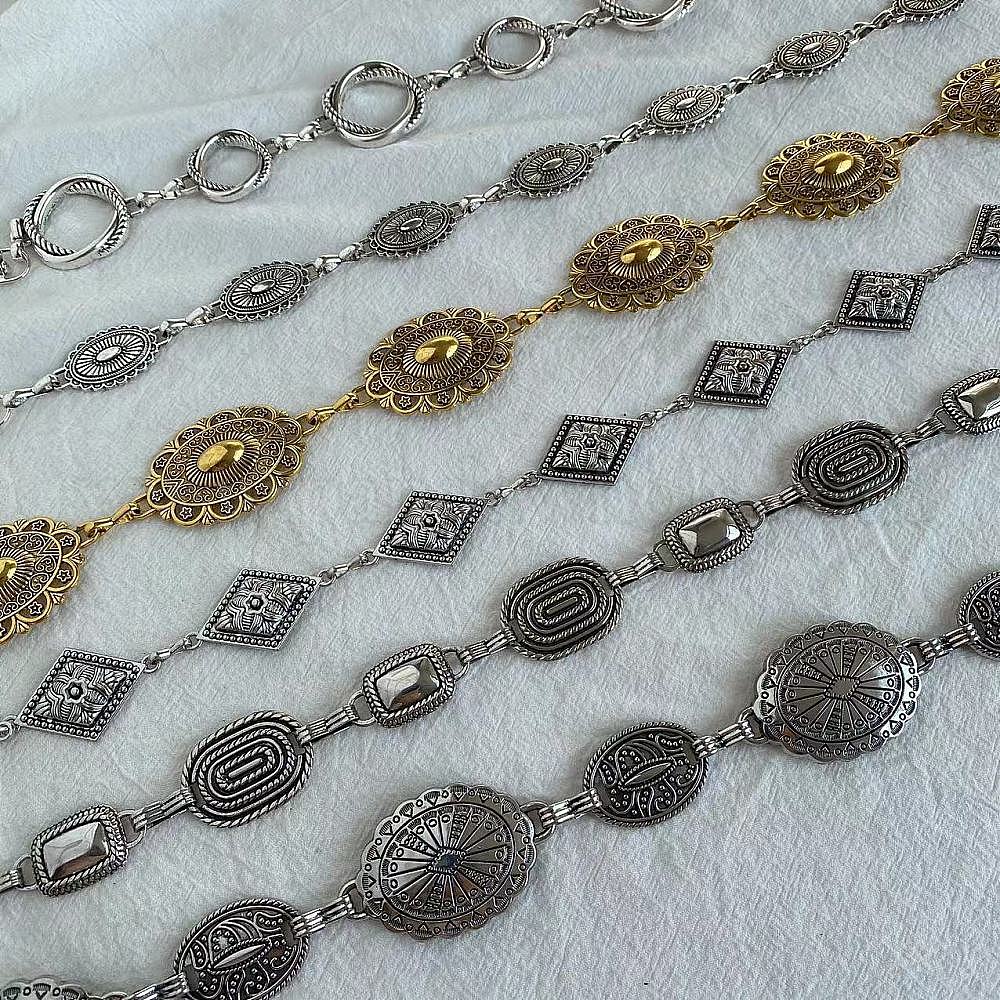 Цепочка из цинкового сплава и железа в тибетском стиле с овальными ромбическими звеньями, цепочки для талии и живота