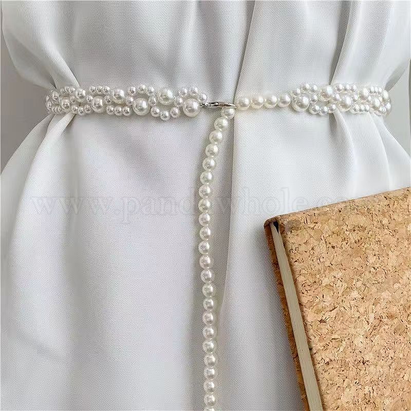 • Белый Цепочки для талии и живота из искусственного жемчуга из сплава и пластика для женщин, платина, белые, 1180 мм