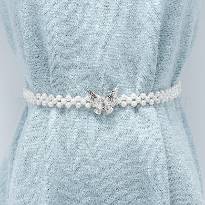 • Бабочка Белые пластиковые цепочки на талию с бусинами из искусственного жемчуга, Сплав с застежками, платина, бабочка, 650 мм