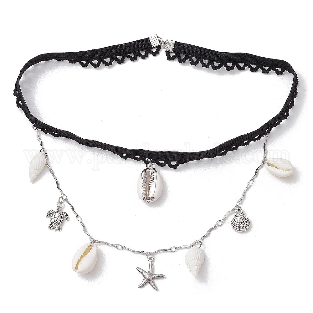304 цепи для ножек из нержавеющей стали с кисточками в виде морских звезд, ракушек и черепах, черные эластичные украшения для тела с натуральными подвесками из ракушек для женщин