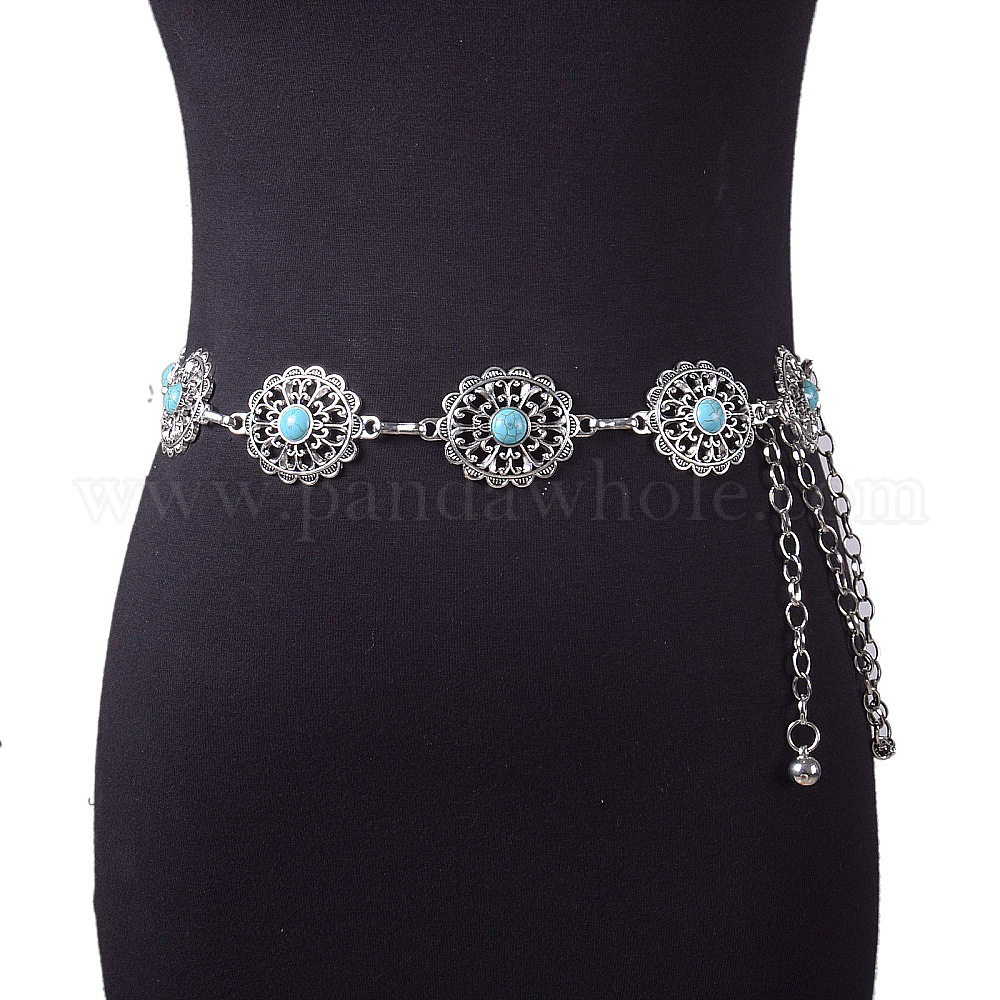 Сплав с синтетической бирюзой, овальные цветочные цепочки на талию для женщин