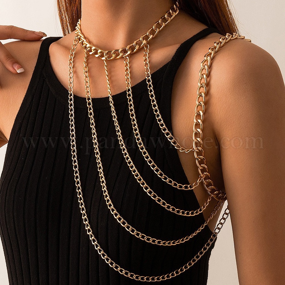 • Золотой Многослойные витые цепи на плечи для женщин, золотые, 350~370 мм