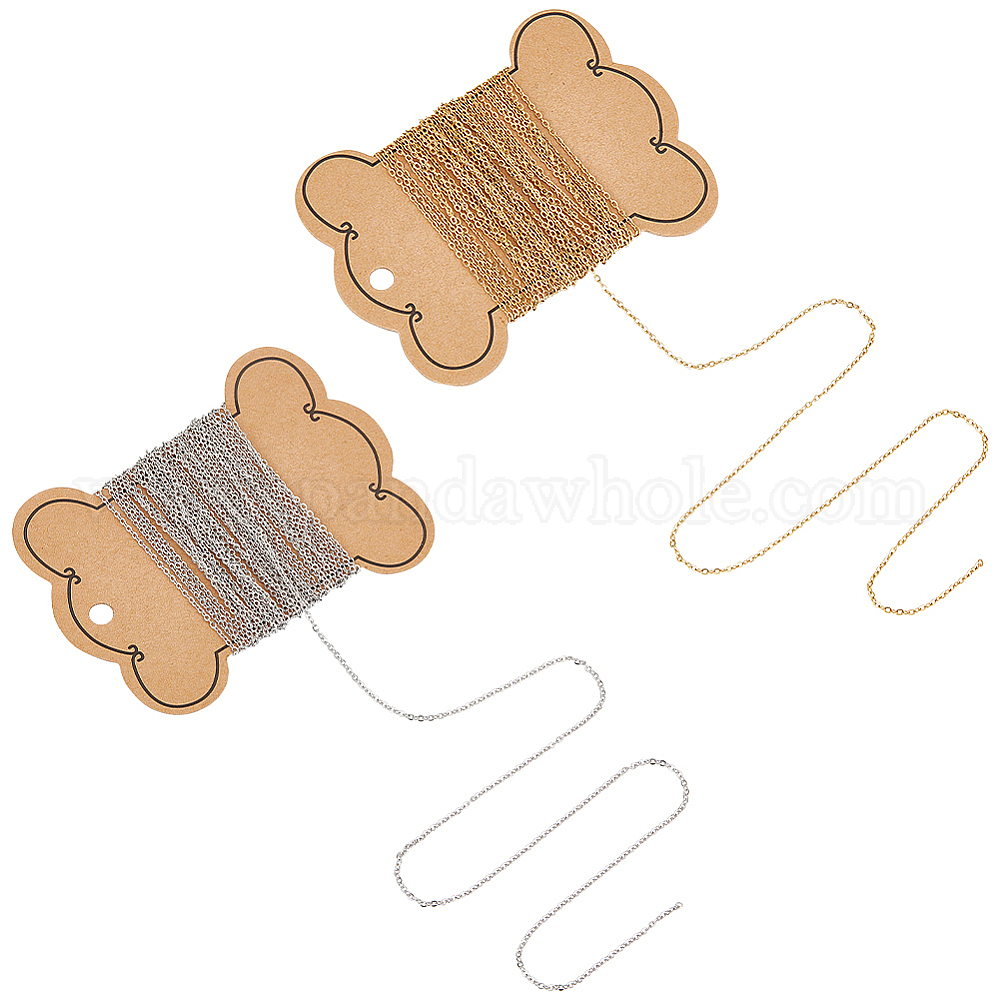 • Золотой & Цвет Нержавеющей Стали 10м 2 цвет 304 плоские кабельные цепи из нержавеющей стали, пайки, с карточной бумагой, золотые и нержавеющая сталь цвет, 2x1.5x0.4 мм, около 16.40 футов (5 м)/цвет