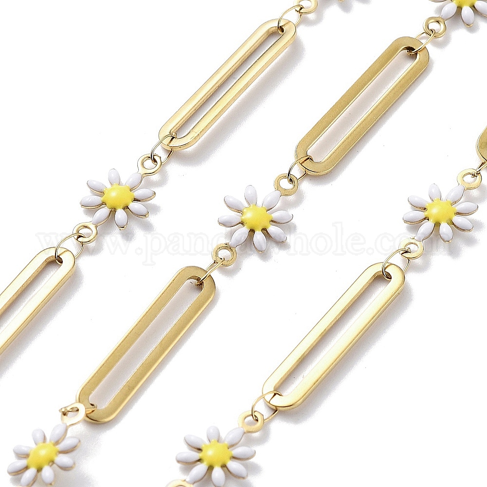 • Белый Ионное покрытие (ip) 304 звенья цепи из нержавеющей стали, со смолой, эмалью и катушкой, несварные, реальный 18 k позолоченный, цветок, белые, 13x7.5x2 мм, около 32.81 футов (10 м) / рулон