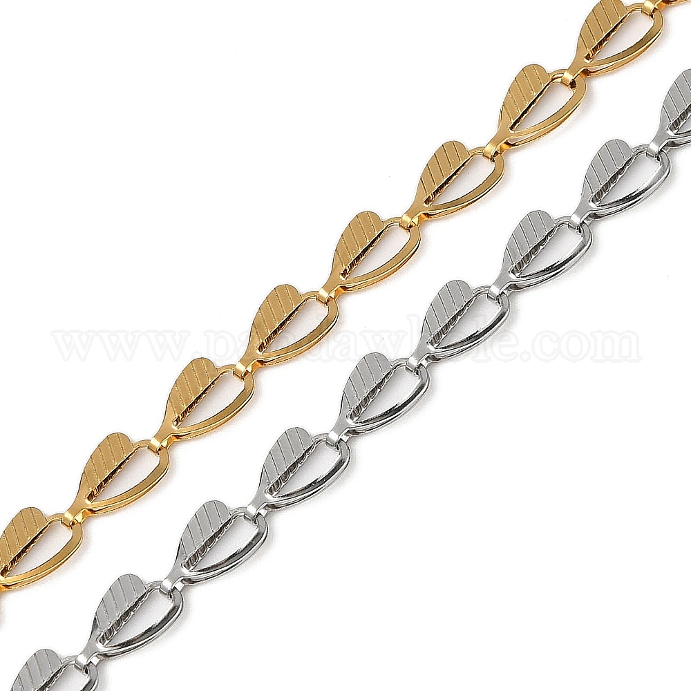 • Золотой 304 цепи из нержавеющей стали ссылка, ионное покрытие (ip), несварные, с катушкой, сердце, золотые, 9x5.5x2 мм