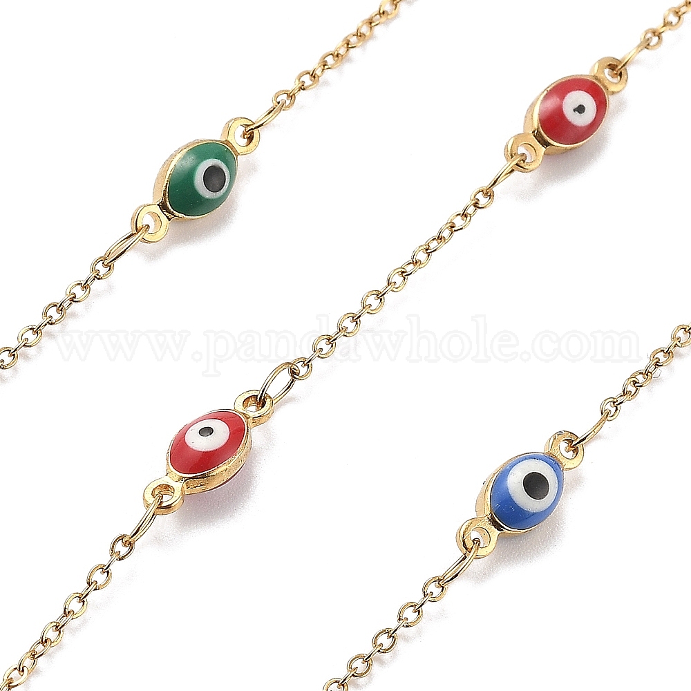 Цепи из эмали и нержавеющей стали, ионное покрытие (ip), пайки, реальный 304 k позолоченный, злые глаза, с катушкой