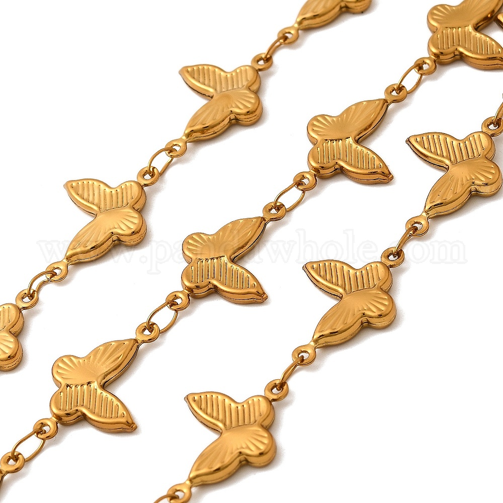 • Настоящее золото 18K 304 Цепи-бабочки из нержавеющей стали, несварные, с катушкой, реальный 18 k позолоченный, 20.5x14x2.5 мм, 5 м / рулон