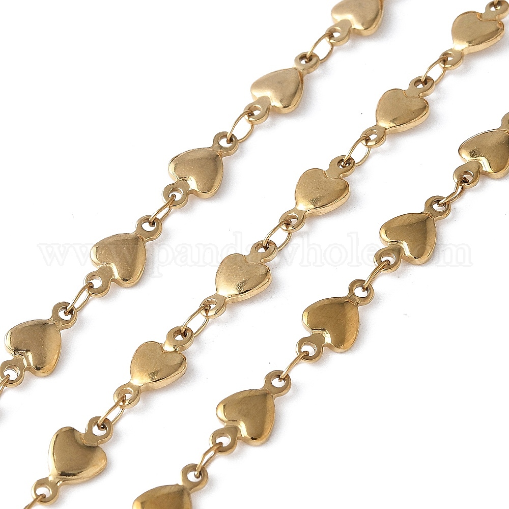 • Настоящее золото 18K 304 цепи из нержавеющей стали ссылка, пайки, с катушкой, ионное покрытие (ip), сердце, реальный 18 k позолоченный, 10x5.5x1.5 мм, около 32.81 футов (10 м) / рулон