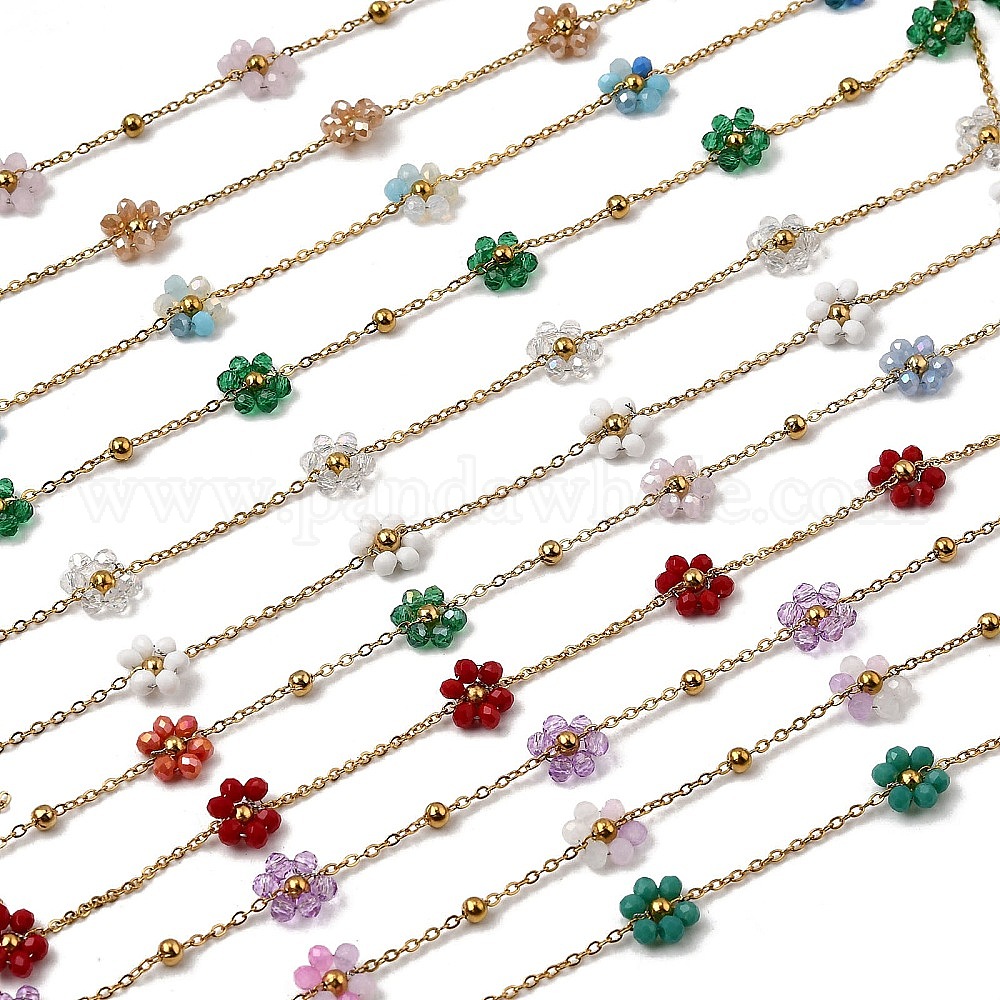 • Разноцветный 304 из нержавеющей стали цепи связи цветок, со стеклом, стойки покрытие, долговечный, ионное покрытие (ip), реальный 18 k позолоченный, пайки, с катушкой, красочный, 2x1.5x0.4 mm и 7.5x9.5x3 mm