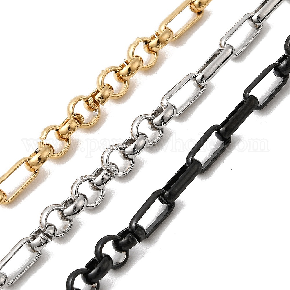 • Черный 304 из нержавеющей стали Figaro цепи, несварные, с катушкой, вакуумное покрытие pvd, чёрные, 5.5x5.5x2 мм