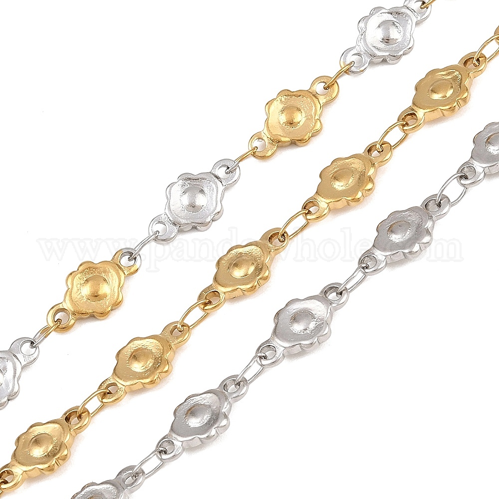 • Золотой & Цвет Нержавеющей Стали 304 из нержавеющей стали цепи связи цветок, пайки, ионное покрытие (ip), золотые и нержавеющая сталь цвет, 5.5x10.5x1.5 мм