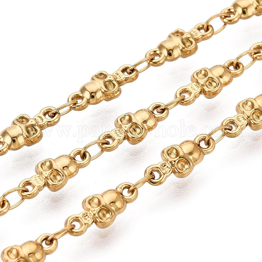 • Настоящее золото 18K 5м 304 звенья цепи из нержавеющей стали с черепом, пайки, с катушкой, ионное покрытие (ip), реальный 18 k позолоченный, 9.5x4x2.5 мм