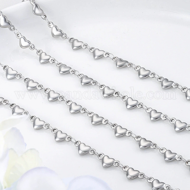 • Нержавеющая Сталь Цвет 304 ссылка цепи из нержавеющей стали сердце, несварные, цвет нержавеющей стали, 10.5x4.5x2 мм