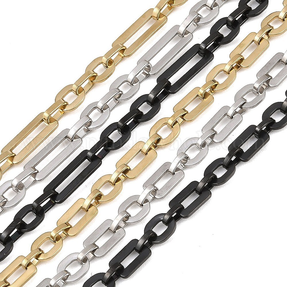201 Овальные цепочки из нержавеющей стали с прямоугольными звеньями, ионное покрытие (ip), несварные, с катушкой