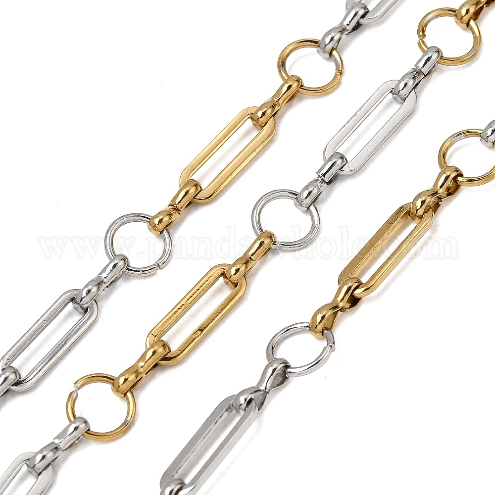 Двухцветный 304 овальный браслет из нержавеющей стали с цепочками из кольцевых звеньев, ионное покрытие (ip), несварные, с катушкой