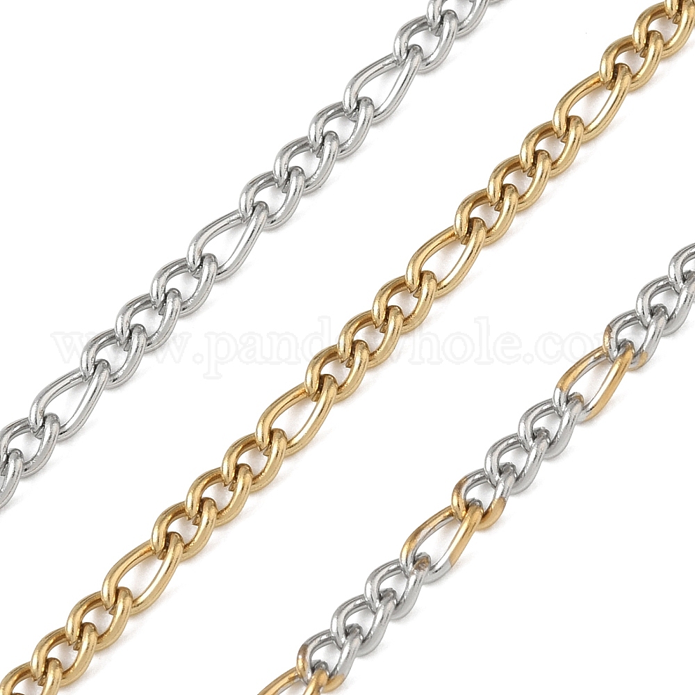 • Золотой & Цвет Нержавеющей Стали Двухцветные 304 цепи Фигаро из нержавеющей стали, несварные, с катушкой, ионное покрытие (ip), золотые и нержавеющая сталь цвет, 5.5x3x0.5 мм и 4x3x0.5 мм