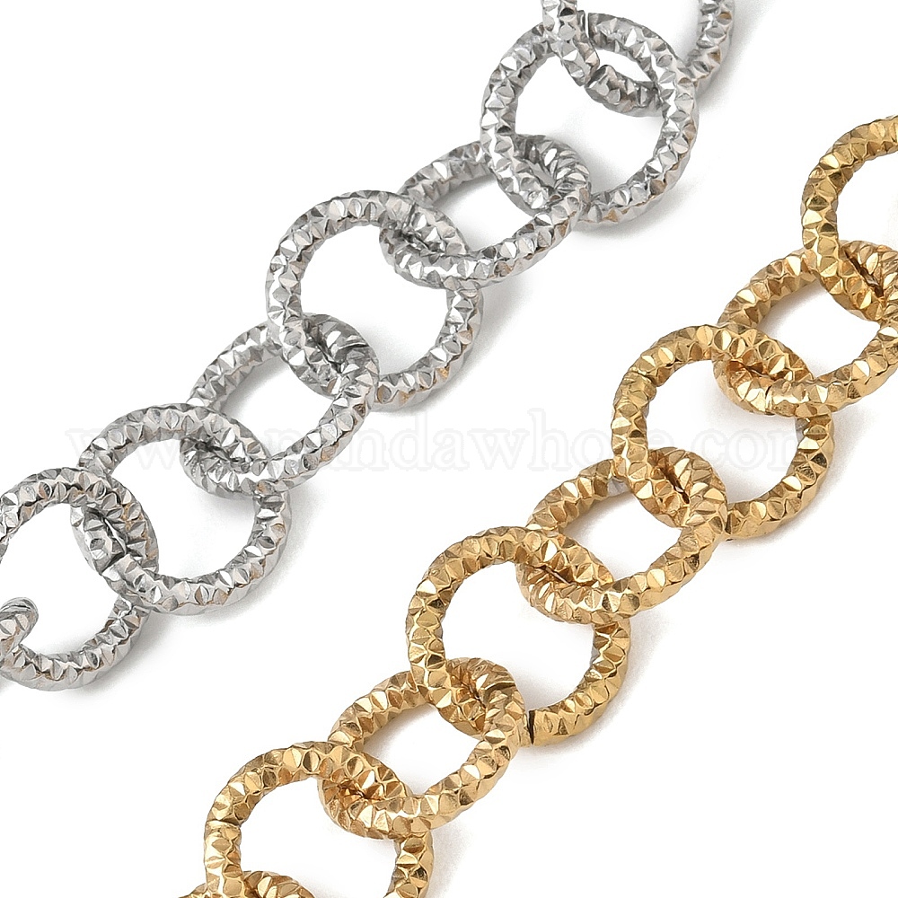 • Золотой 304 Цепи из текстурированной нержавеющей стали с кольцами, несварные, с катушкой, ионное покрытие (ip), золотые, 12x2 мм