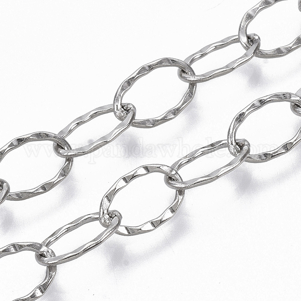 • Нержавеющая Сталь Цвет Устойчивы к потускнению 304 цепи из нержавеющей стали, , пайки, Плоско-овальные, цвет нержавеющей стали, 8.5x6x1 мм, около 39.37 дюйм (1 м) / прядь