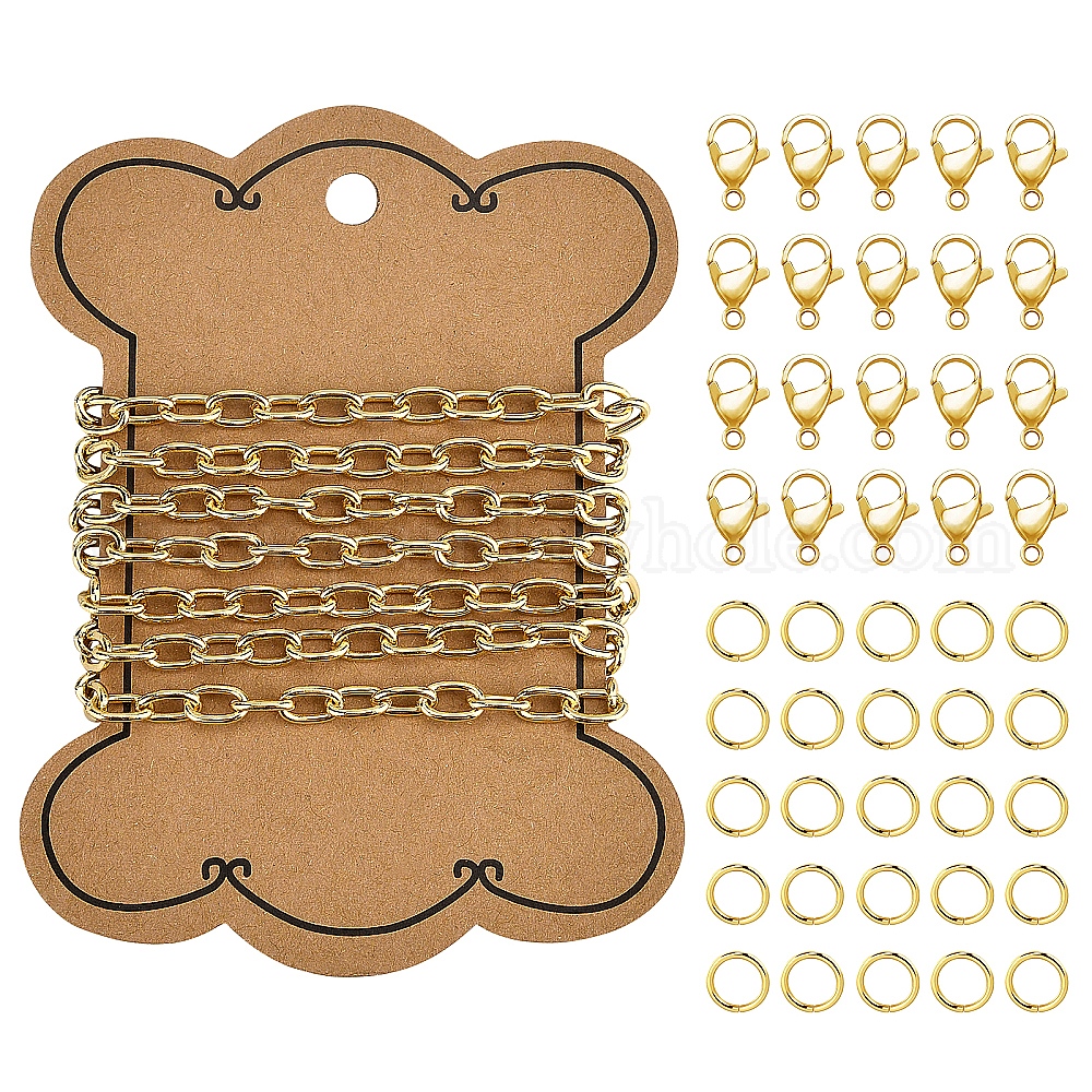 1m латунные овальные цепочки из скрепок, пайки, с карточной бумагой, реальный 18 k позолоченный, 40 шт. 304 открытые прыжковые кольца из нержавеющей стали и застежки в форме когтей лобстера