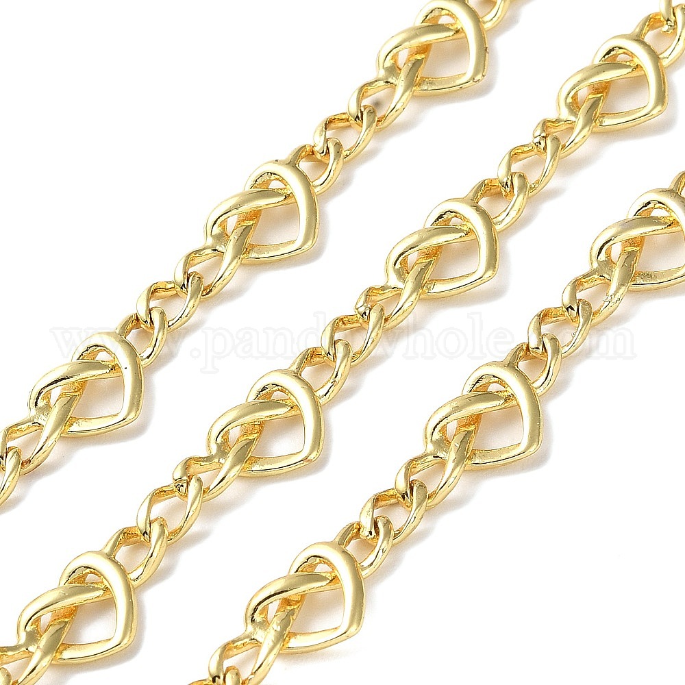 Латунные цепи с звеньями в форме сердца с покрытием стойки, бордюрные цепи, пайки, с катушкой, без кадмия и без свинца