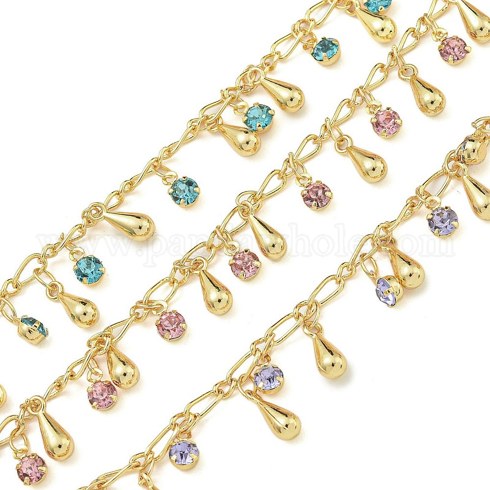 Цепи латуни, со стеклянными ссылками, без кадмия, без никеля и без свинца, слеза, реальный 18 k позолоченный, пайки, с катушкой