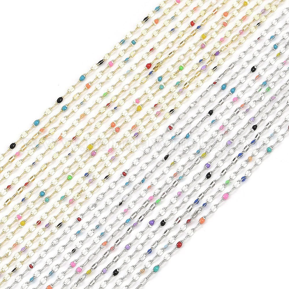 • (52) Непрозрачная лаванда Латунные цепочки, с эмалью, с катушкой, пайка без свинца и кадмия, платина, разноцветные, 4x2x0.2 мм