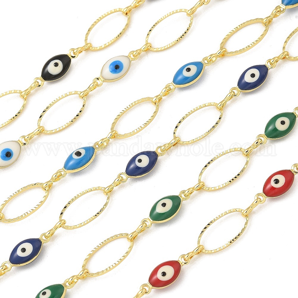 Латунные эмалевые звенья цепи, долговечный, несварные, реальный 18 k позолоченный, овал с сглаза