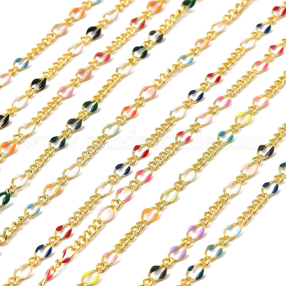 Латунь Figaro цепи, пайки, с эмалью, стойки покрытие, долговечный, без свинца и без кадмия, с катушкой, реальный 18 k позолоченный