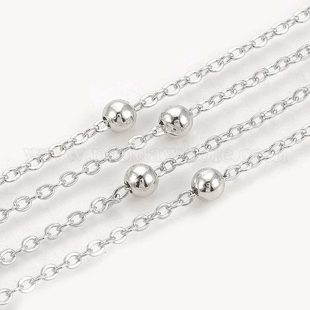 • Платинированный 3.28 ноги латунные кабельные цепи, спутниковые сети, с круглых бусин, пайки, Плоско-овальные, Реальная платина, 2x1.5x0.2 мм