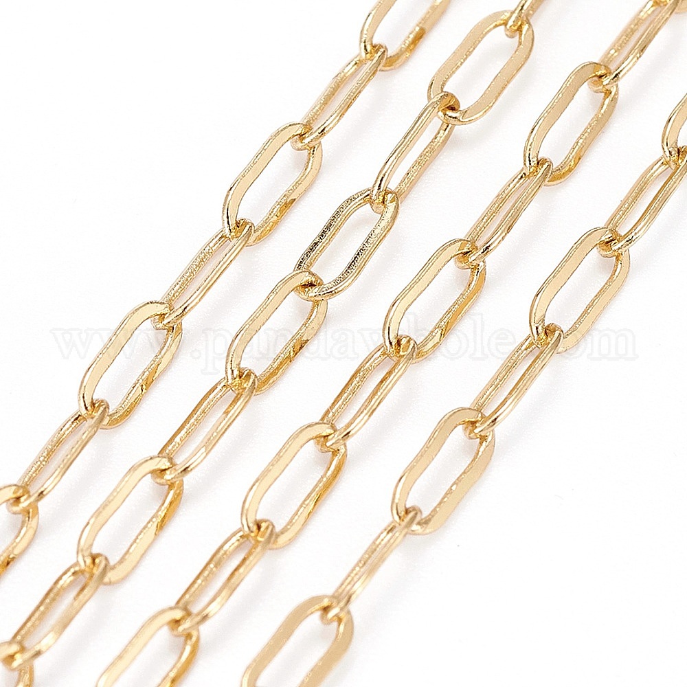 • Настоящее золото 18K 3.28 ноги спаяны латунные скрепки цепи, Плоско-овальные, тянутые удлиненные кабельные цепи, долговечный, реальный 18 k позолоченный, 6x2x0.5 мм