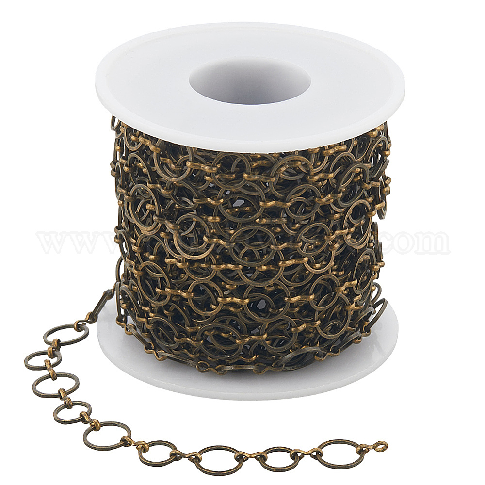 10м латунные цепочки ручной работы с кольцевыми звеньями, несварные, без никеля , с катушкой