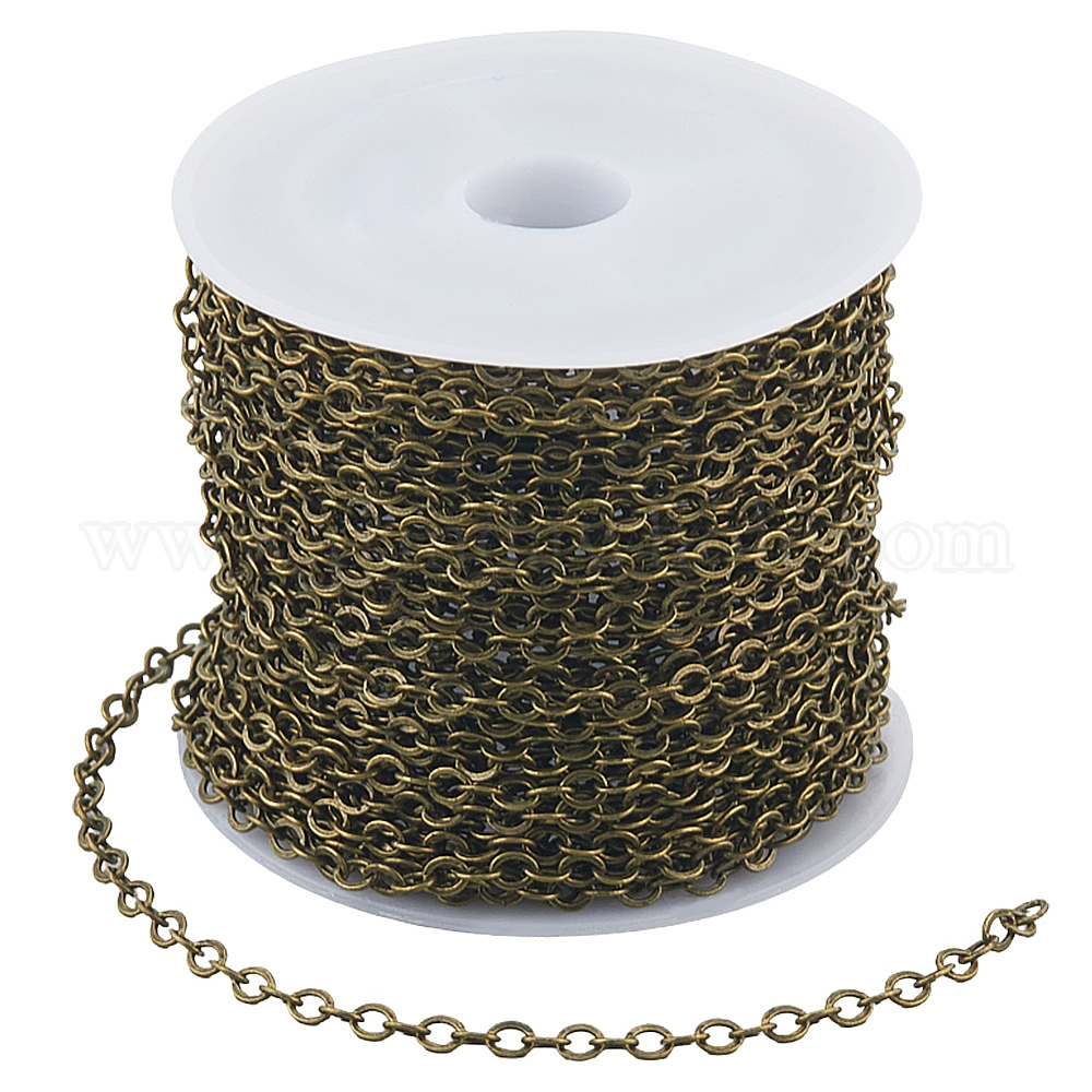 • Античная Бронза 10 м латунные кабельные цепи, пайки, с катушкой, Плоско-овальные, без кадмия, без никеля и без свинца, античная бронза, 3.2x2.5x0.4 мм