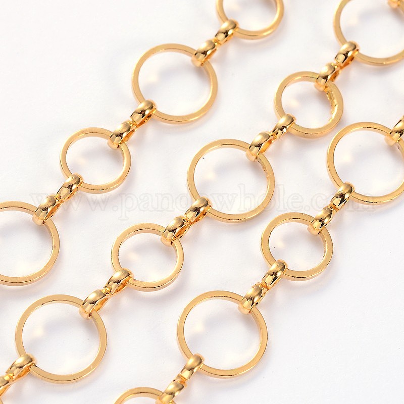 • Золотой Латунные цепочки, несварные, с катушкой, золотые, о 8 и 10 mm в диаметре, толщиной 1 мм , около 32.8 футов (10 м) / рулон