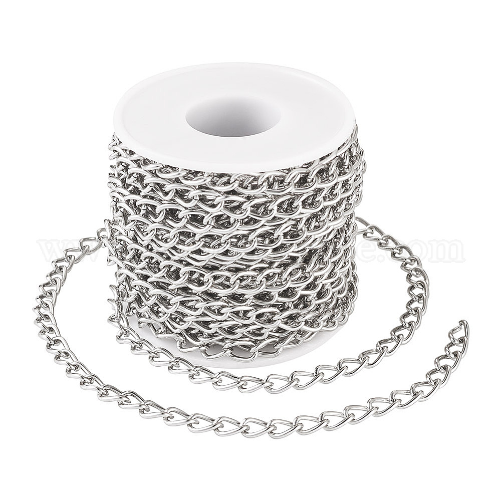 • Платина 10m оксидированные алюминиевые бордюрные цепи, несварные, с катушкой, платина, 10x6x1 мм, около 32.81 футов (10 м) / комплект