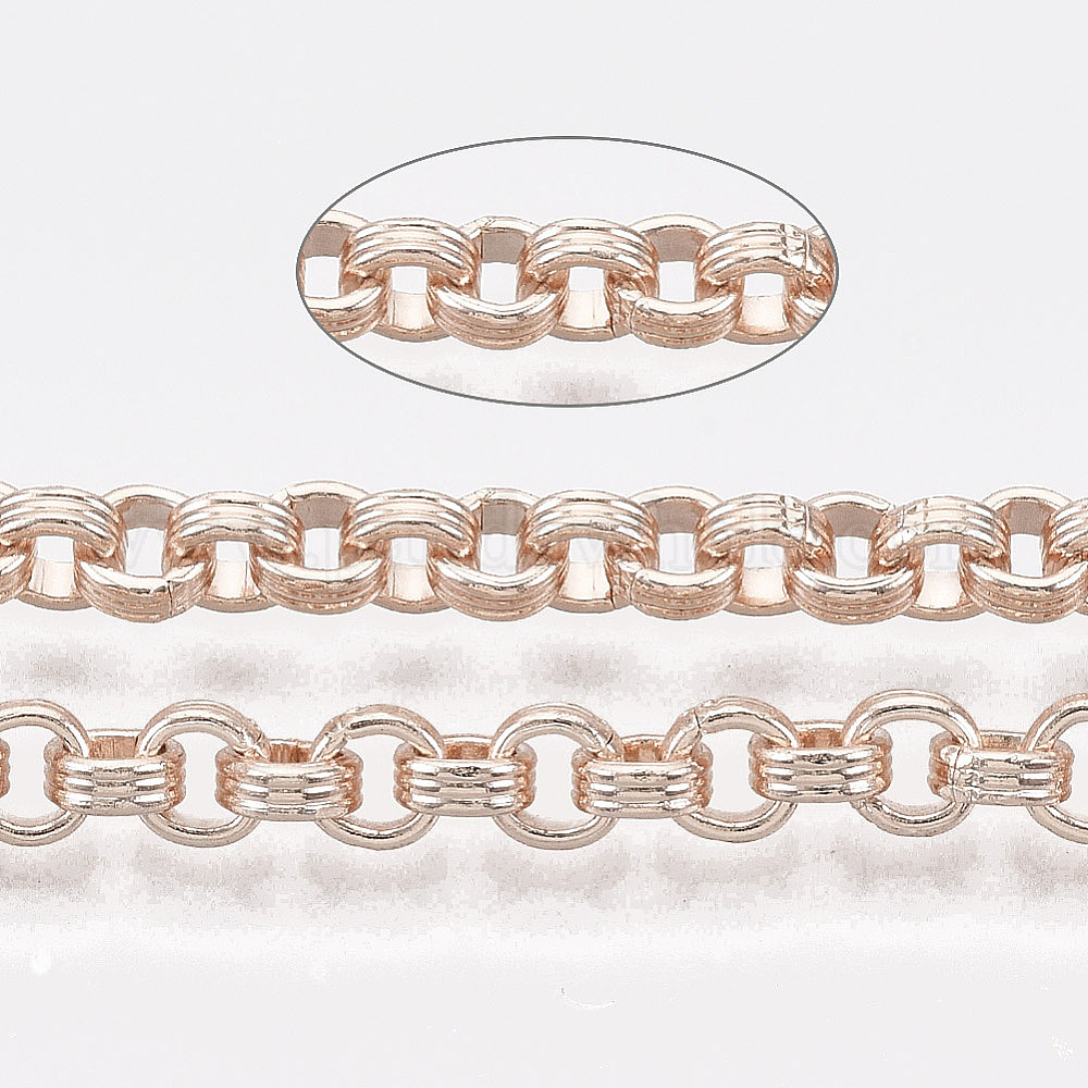 • Розовое Золото Железные канавки цепи Роло, несварные, с катушкой, розовое золото , 4.2x1.6 мм, около 82.02 футов (25 м) / рулон