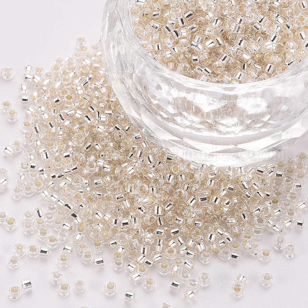Стеклянные цилиндрические бусины, бисер, серебряная линия, круглое отверстие (028BDE)