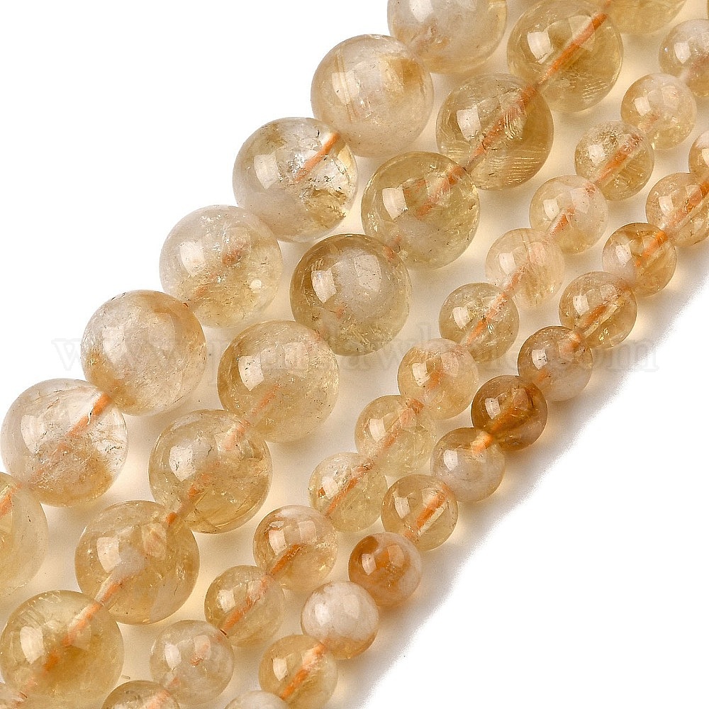 Нагретые нити из натуральных цитриновых бусин, круглые