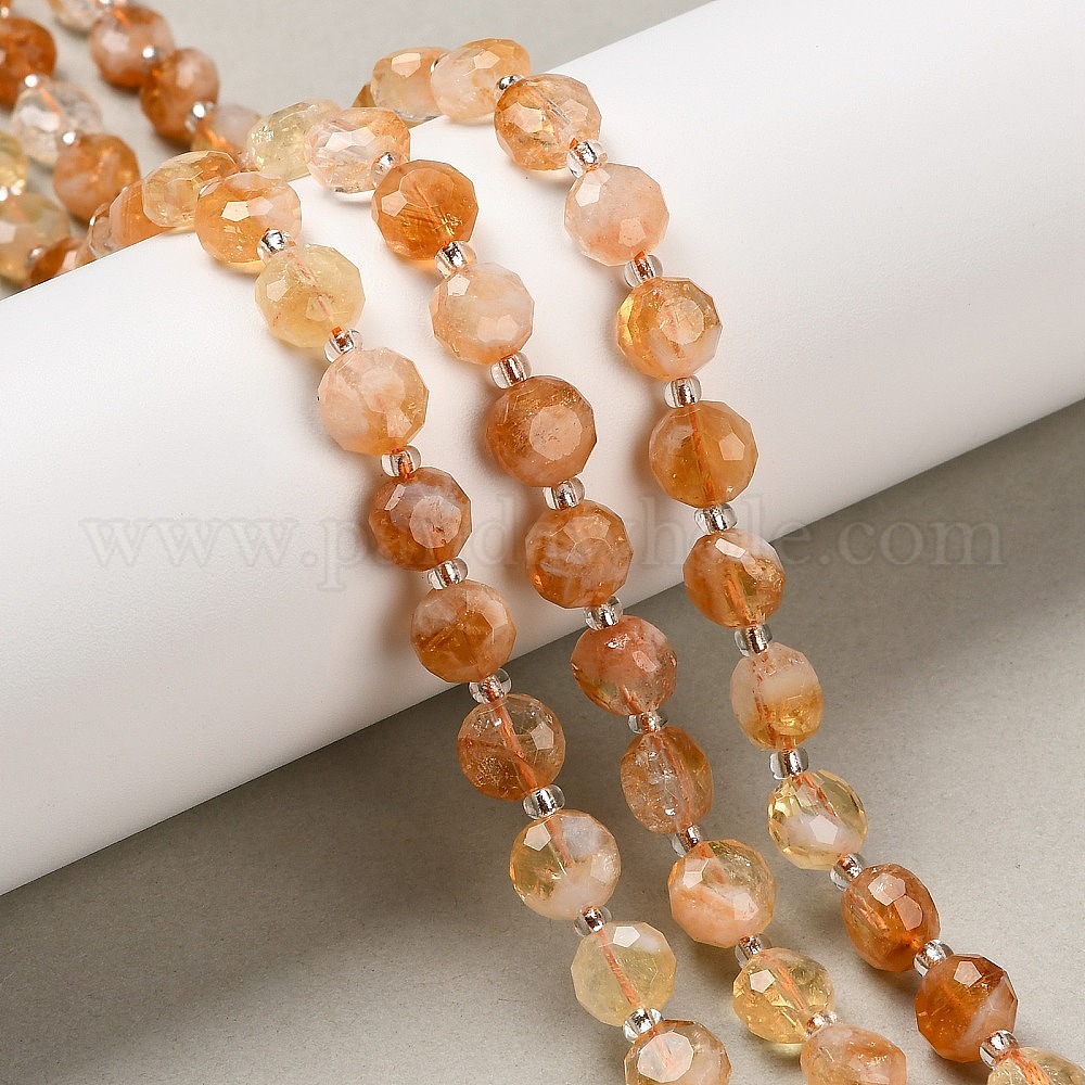Нагретые нити из натуральных цитриновых бусин, плоско-круглые, граненые, с бисером