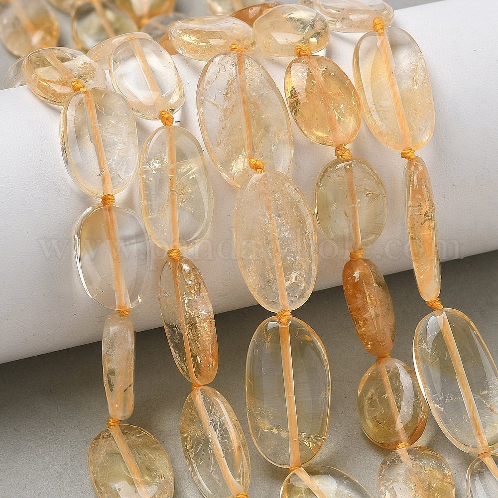 Нагретые нити из натуральных цитриновых бусин, Плоско-овальные