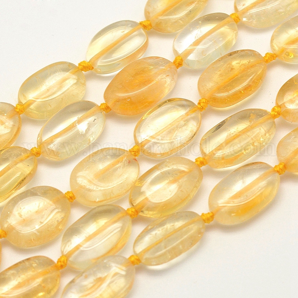 Нагретые нити из натуральных цитриновых бусин, овальные