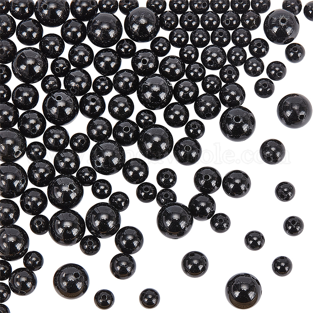120шт 3 стиль натуральный черный турмалин бусины нити, круглые