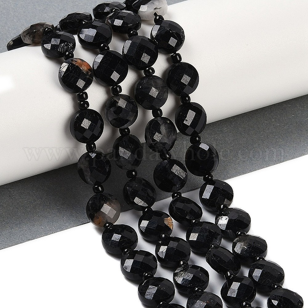 Натуральный черный турмалин бисер нитей, граненые, плоско-круглые, с бисером