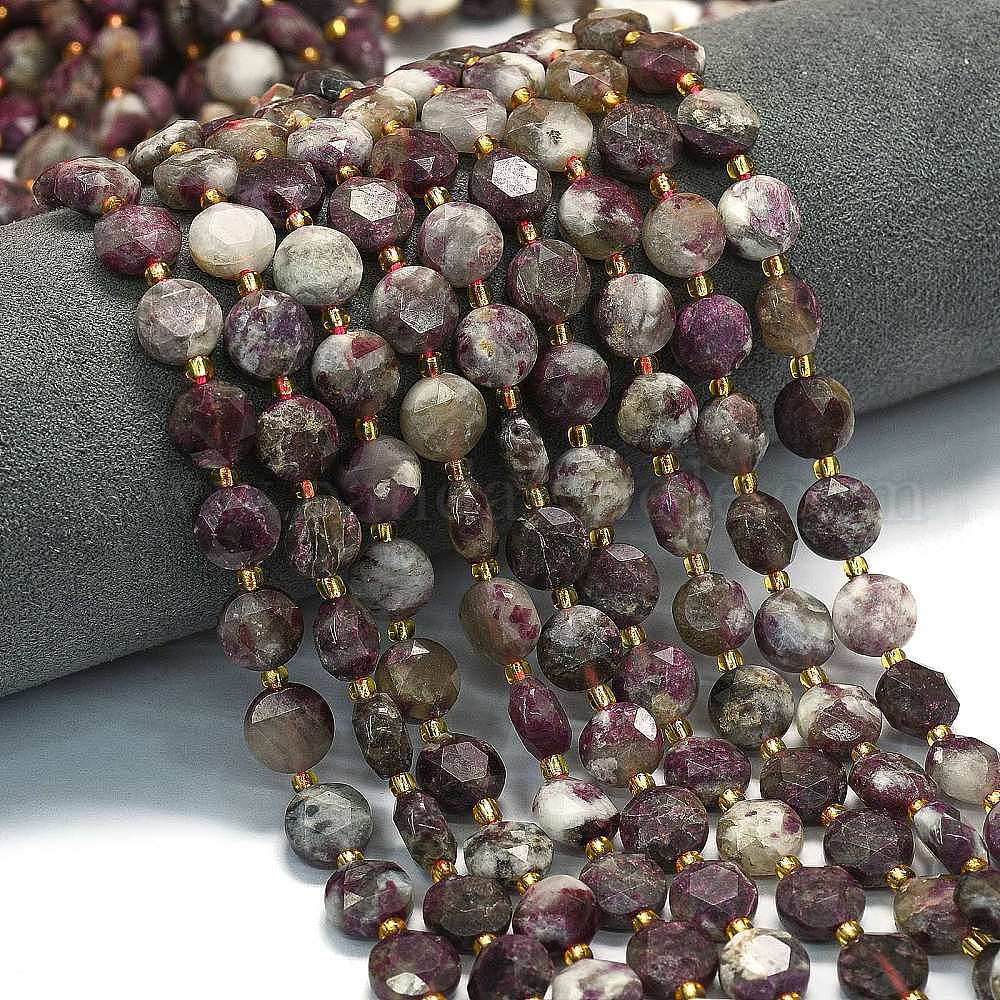 Натуральный сливовый цвет турмалиновый бисер пряди, граненый шестиугольный разрез, плоско-круглые, с бисером