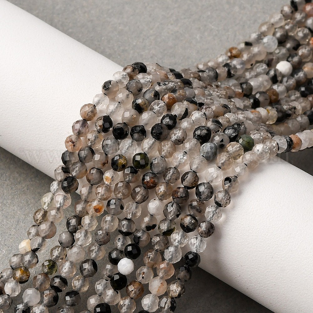 • Турмалин Натуральный турмалин шарик нити, граненые, круглые, 3~3.5 мм, отверстие : 0.6 мм, около 119 шт / нитка, 15.28 дюйм (38.8 см)