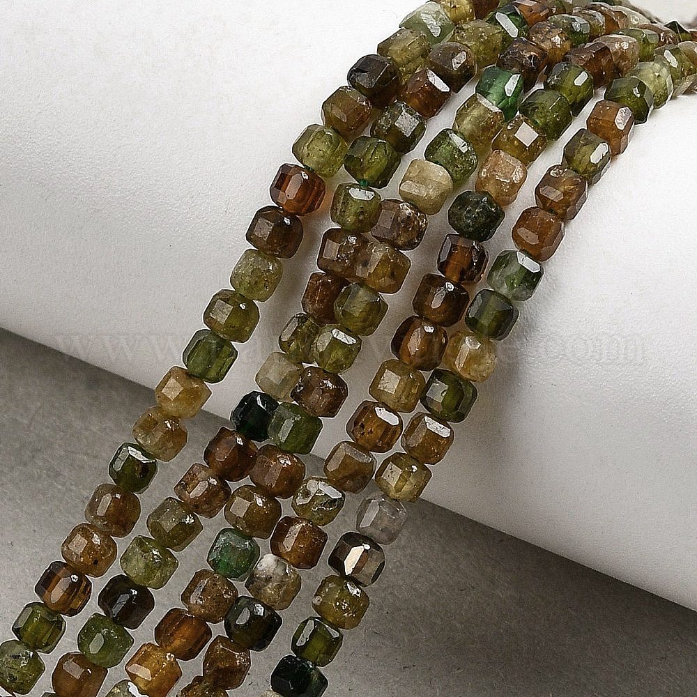 Бусы из натурального зеленого турмалина, граненые настольные бусины в форме куба